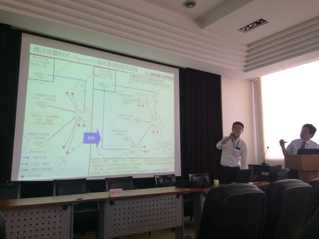 讲座分两部分内容进行。第一部分,近藤先生从供应链管理(SCM)入手,对中国国内的物流大环境进行分析,重点讲解了PUSH型模式和PULL型模式,并结合日通公司以PUSH型为代表的优衣库在中国最佳物流动线设计,以PULL型为代表的丰田生产方式,对比分析日德的PULL型的不同,使同学们深入了解了这两种模式的不同之处。第二部分,近藤先生介绍了亚洲周边国家物流情况。他通过在日通公司参与的一些中亚国际物流项目,以及具体案例,向同学们展示了中国与周边国家的物流环境、以及相应的物流解决方案。