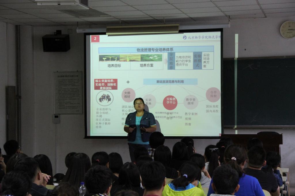 均有较多的人才交流机会。此外,田雪老师让同学们观看历年来学校师生参加的各种活动及比赛,突出国际化的物流管理专业,以此激励同学们要把理论与实践相结合,成为全方面发展的新一代大学生。