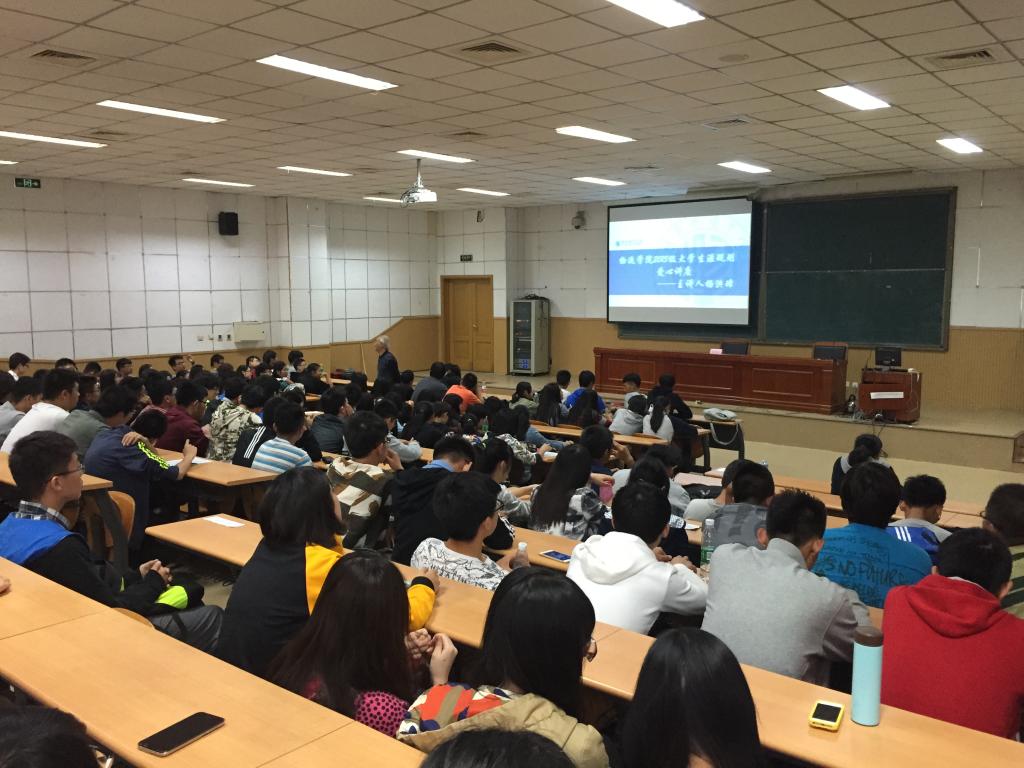 2015级全体新生举办了“大学生涯规划的爱心讲座”。会上,杨洪璋老师以通俗易懂、学生互动的形式,让同学们通过一段段小故事,了解其背后更深层次的教育意义。