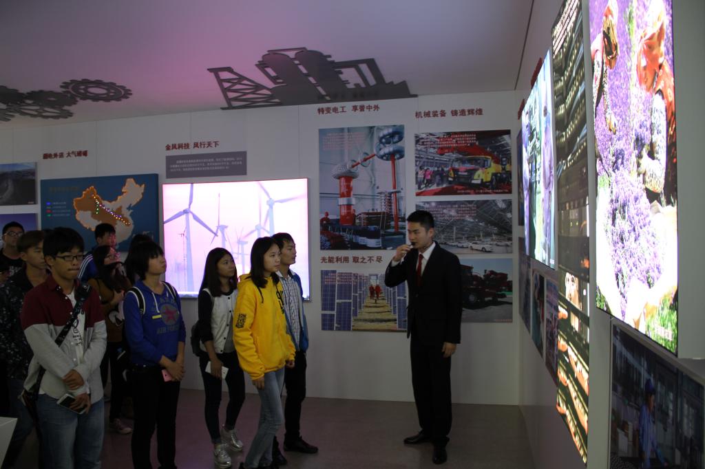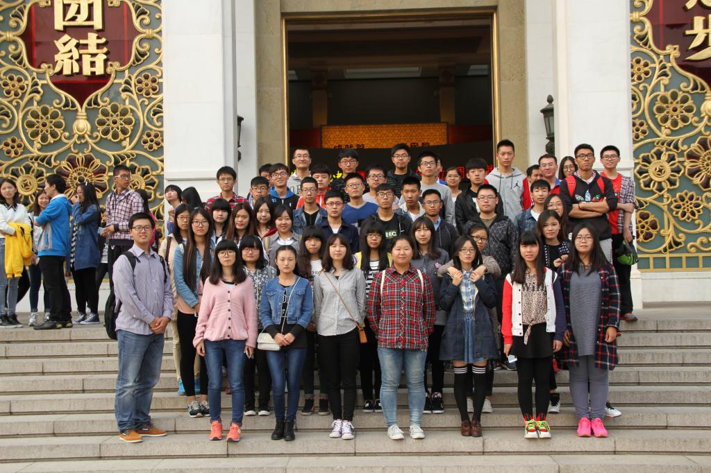 的同学们跟随讲解员的引导参观展馆,认真倾听讲解员对新疆维吾尔自治区发展所做的努力与如今成就的讲述。参观过展馆后,参与此次活动的全体同学在民族文化宫门前合影留念。