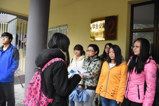 2015年11月19日中午12点20分,参与生活部“宿舍文化月——交换空间”的男女生在2号公寓门前集合,所有参与活动的大一新生都准时到场,2015级年级辅导员朱晓婷也参与了此次活动。