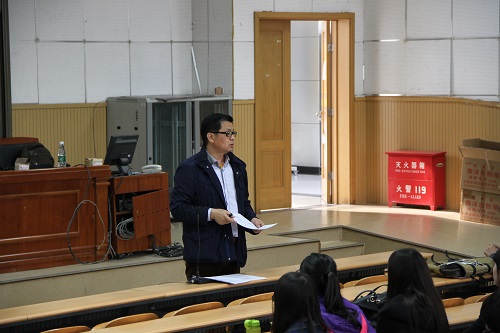 于2016年4月12日下午4:00整在二教一报开展了“职业选择和规划”专题讲座。此次讲座主要面向大三学生,特别邀请了北京嘉荣物流有限公司总经理邹玉耕先生来为同学们进行讲座。讲座由13级年级辅导员王志鹏老师主持,全体13级学生参加了本次讲座。