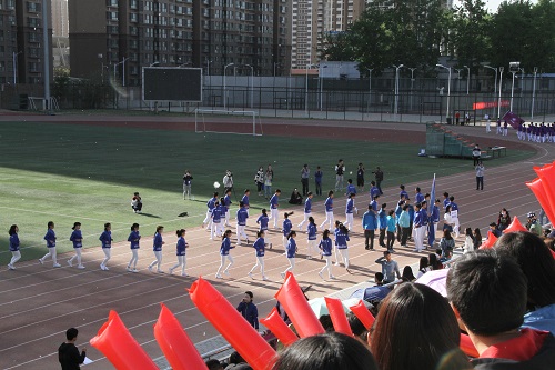 在校领导于主席台上宣布运动会正式开幕后,校国旗班方阵和各学院的方阵出场进行方队队列展示。在绿帽小说