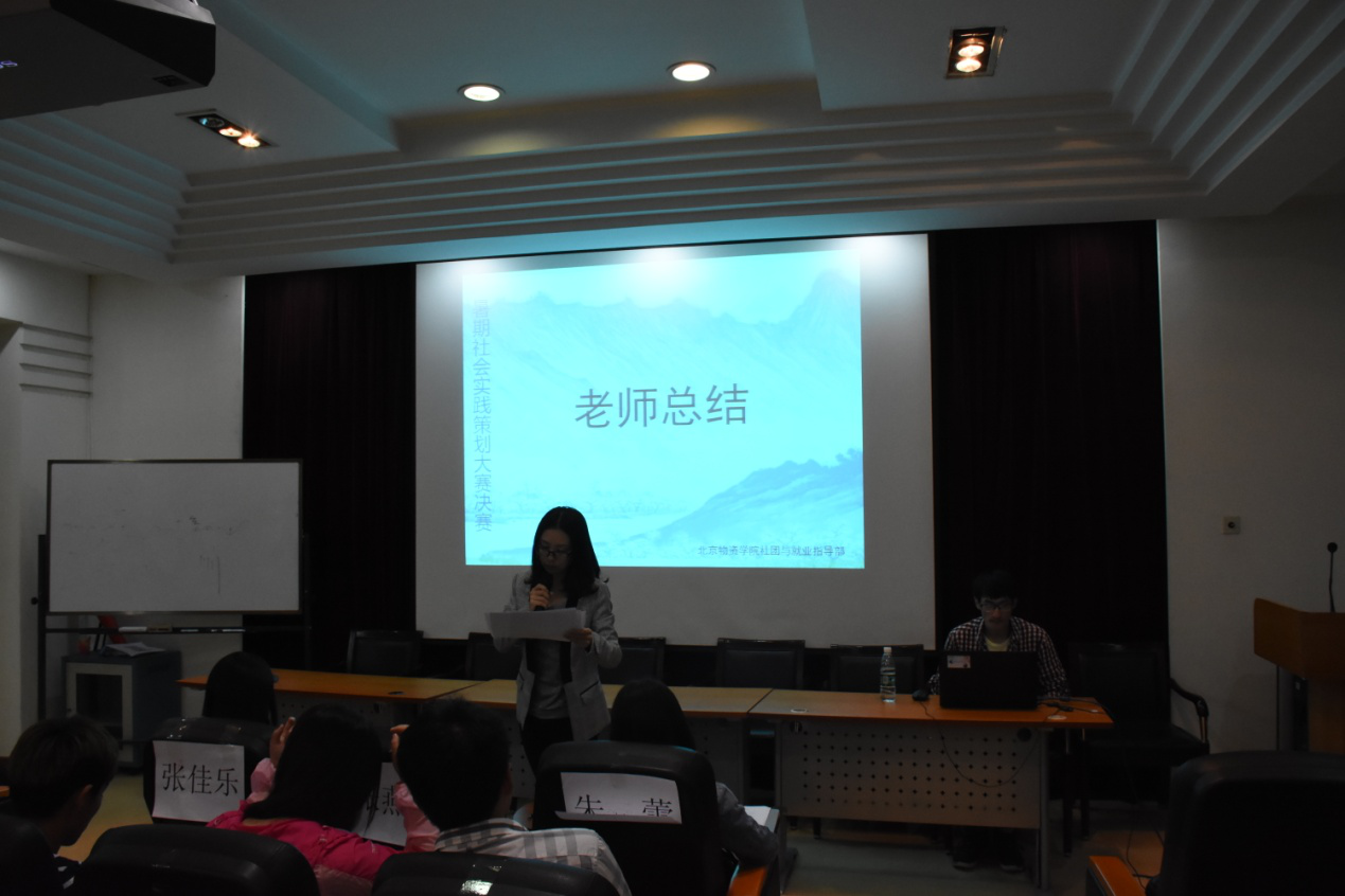 每个小组都有各自的特点,他们的策划都十分详细全面。而在下边观赛的同学们,也都听的津津有味,最后各小组的展示都结束以后,张燕燕老师又对每一个小组的方案内容逐一点评,表扬了他们的优点,同时也指出了不足。