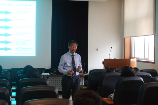 副院长姜旭教授主持。吴教授用英文进行了自我介绍,与到场学生积极互动,并引出了本次讲座的主要内容,即“供应链的变化及其发展方向”。接着,吴教授对于目前供应链的发展方向进行了介绍。吴教授指出,近30年来,为了满足消费者日益多样化的需求,供应链逐渐向全球化、前置化、一体化、同步化的方向发展。传统的组织模式与供应链模式正在发生转变,因此每个企业都应该不断求变、不断创新。此外,针对目前采购成本高这一问题,吴教授指出采购方在与供应商谈判时应该和供应商积极协调沟通,发展战略合作伙伴关系,降低成本,从而提高经济收益。最后,吴教授积极与在座听众进行互动,就采购在产品创新方面所起到的重要作用与大家进行了深入探讨,现场气氛十分活跃。