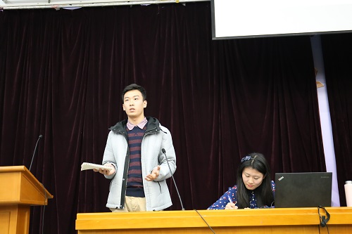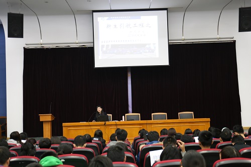 大会第一项,刘老师围绕新生在校的生活及学习两方面,结合相关案例,为新生作了详细的说明及指导。生活方面,刘老师特别强调,同学们在校内外要时刻注意人身及财物安全,并为大家介绍了和学生相关的所有证明的开具事宜,如在读证明、校医院报销流程、学生证补办、身份证补办、护照办理等。学习方面,刘老师分别从学籍累计时间、学分制度、各类评优评奖以及出国交流项目这几方面向在座的同学们作了详细地介绍。