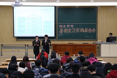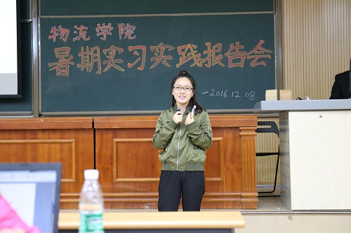 首先,同学们观看了一段2016年暑期实践“重走长征路,青年在践行”的视频。此次暑期社会实践旨在结合所学专业知识,对不同地理位置的物流园区进行调研学习,并加以比较分析,进而探索现代物流发展的新方向。在新生们了解了2016年暑期社会实践活动的相关内容后,参加本次暑期实习实践报告会的七名同学依次向大家分享了他们各自在2016年暑期的社会实践经历。其中,在企业实习的同学分享了自己的工作内容、困难之处以及所学所得,从一开始进入实习单位的不明规则、不会应对其他人员的咨询,经过以谦虚的学习态度向身边人请教、询问,到最后熟悉自己的工作内容,获得上级领导的好评。暑假中参加比赛的同学也向大家分享了自己比赛的过程,面对其他高校高年级同学强有力的竞争,他们专注于提升自己的知识以及技能,最终超越对手取得了优异的成绩。