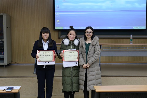 之后,朱老师作了总结发言,她表示在为同学们在暑假期间积极参与到实习实践中提升自己而感到骄傲的同时,也鼓励在场的新生能向他们的学长、学姐们学习,在实践中提升自己。最后朱老师和张老师为同学们颁发了获奖证书及奖品。