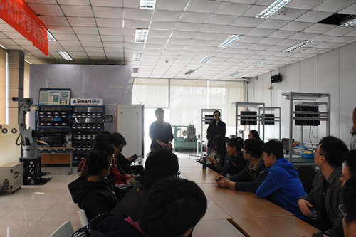 国家级物流系统与技术教学示范中心的概况。紧接着,他询问了同学们对物流的认识以及物流作为第三方利润源,需要有哪些改善等问题。同学们纷纷踊跃发言。王博学长由问题引申至实际,他说:“示范中心的大多数设备在实际生产应用中,对物流成本的降低以及效率的提高都有积极意义。”之后,王博学长带领同学们进馆参观,他依次向同学们介绍了自动货柜,SmartBin系统,抽屉式货架,跌落试验机,U形捡选线,自动化立体仓库以及叉车。