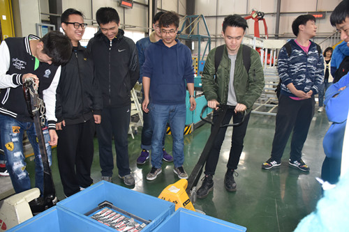 同时,他还亲身操作,给同学们展示叉车及立体仓库的操作过程,并鼓励同学们自己动手操作。王博学长告诉同学们,虽然现在这些物流器械很先进,但随着时代的发展,这些设备都会落后,以至于被淘汰。他希望同学们可以多动脑思考,争取将来创造出更便捷、更实惠的物流器械。
