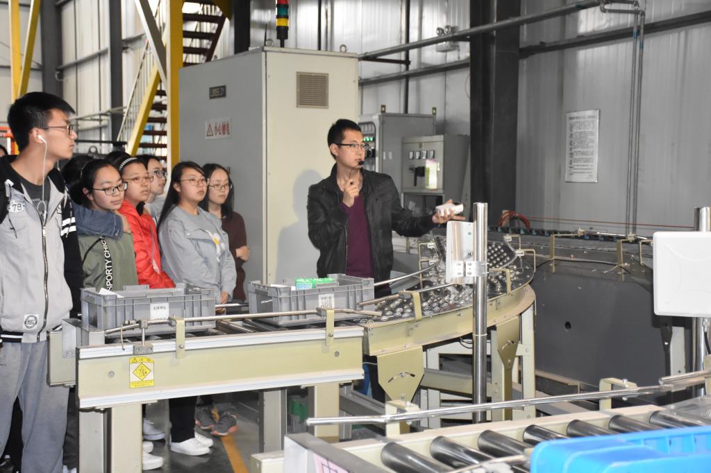 本次参观由研究生部的王博学长进行讲解,2015级质量管理一班、二班的同学均到场聆听学习。王学长的讲解细致入微,联系设备的实际应用与大家进行交流。部分同学在王学长的指导下操作设备,深刻体会先进物流设备给物流行业带来的变化。