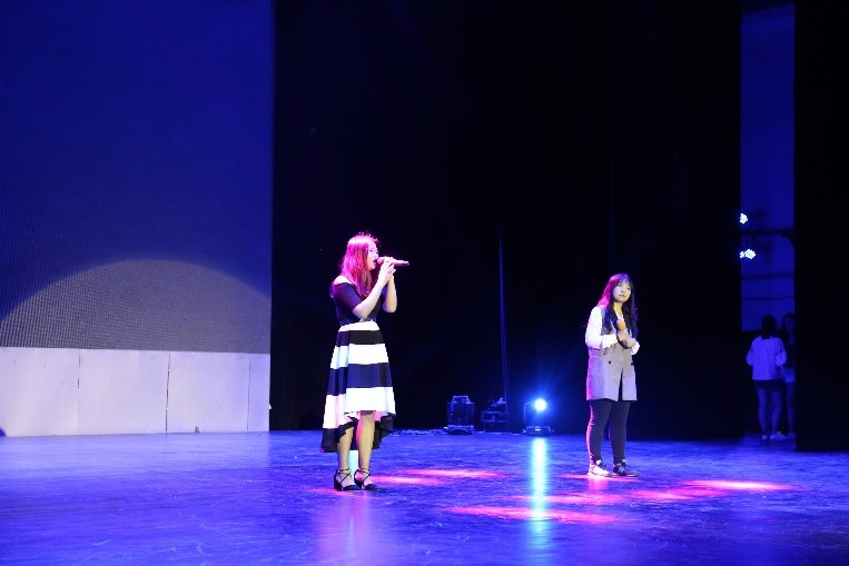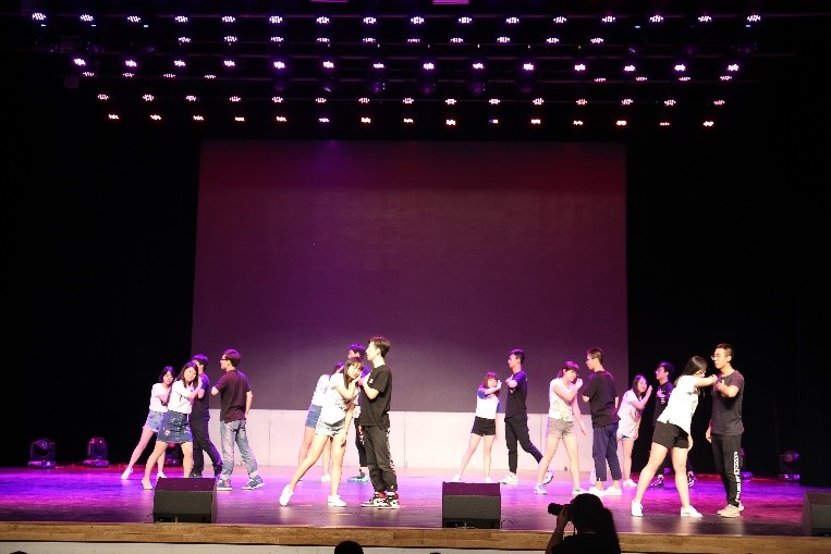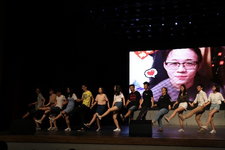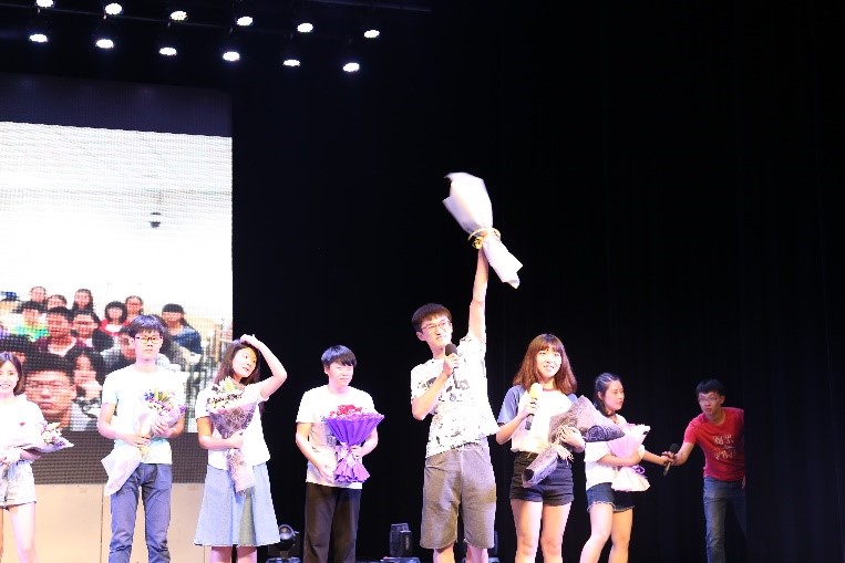 学生会干部的交谊舞和班导们的歌曲与舞蹈将晚会气氛推向了最高点,同学们纷纷冲上舞台,送花合影,感谢学生会干部与班导所有的努力和关心。