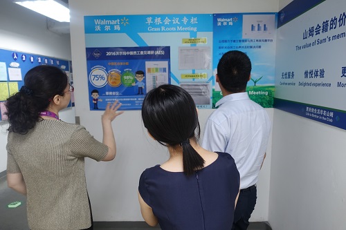 之后,一行人来到沃尔玛山姆会员店(亦庄店)进行走访。人力资源部经理刘颖接待了一行人,并在她带领下参观了山姆会员店。刘经理介绍到,山姆会员商店是世界500强企业沃尔玛旗下的高端会员制商店,利用全球采购资源,为顾客提供国内外畅销商品。在会谈中,刘经理说到,山姆会员商店以大包装、低利润的经营方式,所售商品多采用大箱包装或组合包装以降低成本,顾客由此可享受低廉的仓储价格。刘经理还表示,山姆为在职员工提供各种适合其工作位置的岗位,有完善的晋升制度,渴望与绿帽小说