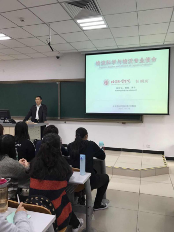 何明珂副校长为物流管理专业新生讲授《专业导论》