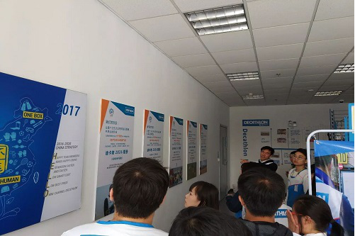 下午13:00左右我们到达了目的地,由工作人员带领我们进入到了园区内进行签到,领取工作服。迪卡侬的工作人员非常热情给那些没吃午饭的同学准备啦面包和水果。稍带休整之后由工作人员带我们了解迪卡侬的历史和未来发方向。