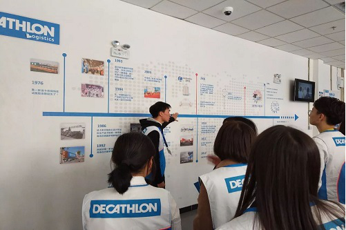 迪卡侬的宗旨:“让最广泛的大众同怀运动的愿望,共享运动的欢益!”在2020年是迪卡侬要把门店增加到400家。我们穿着工作鞋套参观了园区内的一个仓库,耐心解答我们的问题,让我们更加了解我们未来的工作环境。
