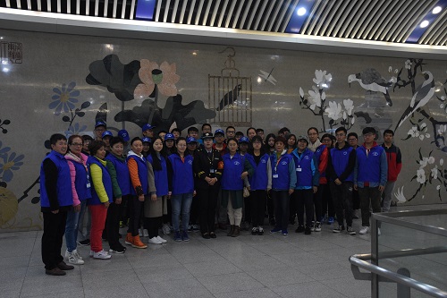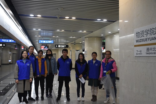 的志愿者们由志愿服务部组织,前往地铁六号线物资学院路站,开展以“平安地铁”为主题的志愿活动,体验地铁工作人员的辛劳日常。