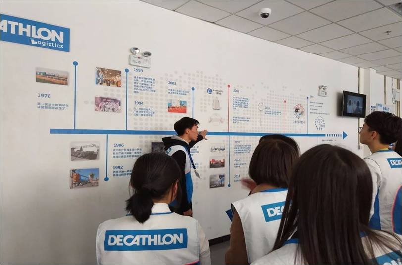 下午13:00左右我们到达了目的地,由工作人员带领我们进入到了园区内进行签到,领取工作服。迪卡侬的工作人员非常热情给那些没吃午饭的同学准备啦面包和水果。稍带休整之后由工作人员带我们了解迪卡侬的历史和未来发展方向。迪卡侬的宗旨:“让最广泛的大众同怀运动的愿望,共享运动的欢益!”在2020年是迪卡侬要把门店增加到400家。我们穿着工作鞋套参观了园区内的一个仓库,耐心解答我们的问题,让我们更加了解我们未来的工作环境。