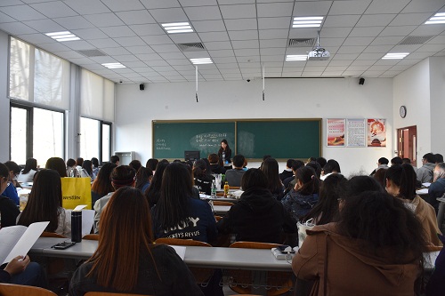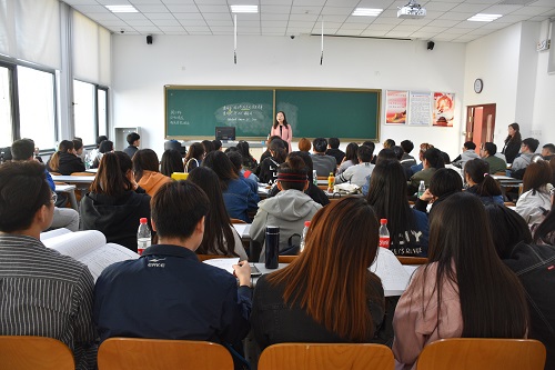 在二教103教室召开第37期党课动员大会。会议由17级辅导员老师甄姿主持。