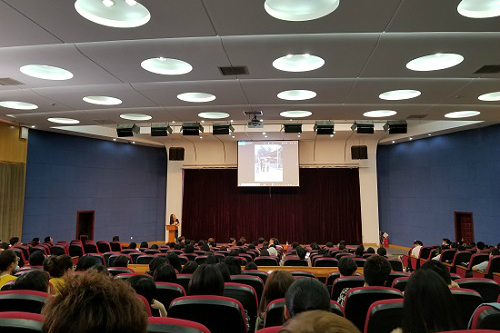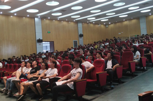 于知新楼二层报告厅为17级全体同学召开了军训动员大会。此次会议由辅导员老师甄姿担任主讲。
