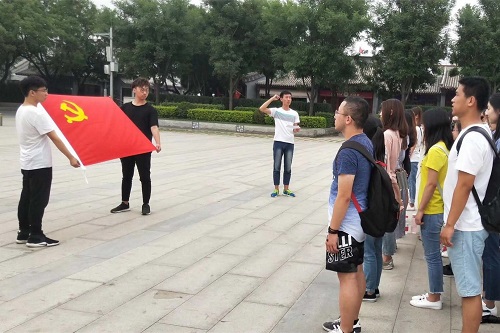 此次展览以卢沟桥事变为开端,分为八个部分,详细地展现了日侵华战争日军的种种暴行和中华人民奋起反抗争取民族独立的壮举。在参观的过程中,同学们感受了当面对外来侵略时,中华民族一致抵御外敌的团结精神。在中国共产党的领导下,全国同胞共同奋起抗敌,保卫国土。整个中华民族空前的团结精神,形成了真正战胜侵略者的无坚不摧的力量。跟随着讲解人的介绍,同学们认真记录并学习。部分同学在参观之余,自行拍照浏览历史和战争遗迹等。随后,在纪念馆广场上,在党旗面前,所有参观者进行了庄严的宣誓及佩戴党员徽章仪式,并集体合影留念。