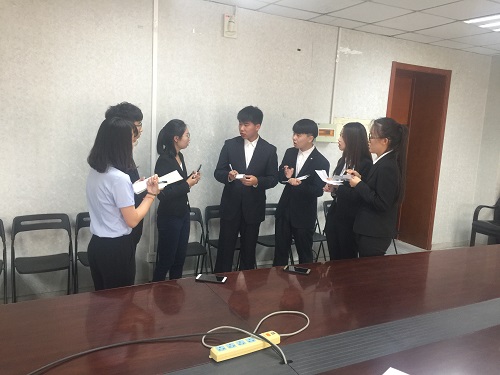 8日下午1:00,竞选人于北实112会议室进行面试。毛文富老师、朱晓婷老师以及主席团成员担任评委。在自我介绍、现场提问和无领导小组讨论中,候选人们充分展现了自身的管理、协调以及应变能力,得到了现场评委一致认可。