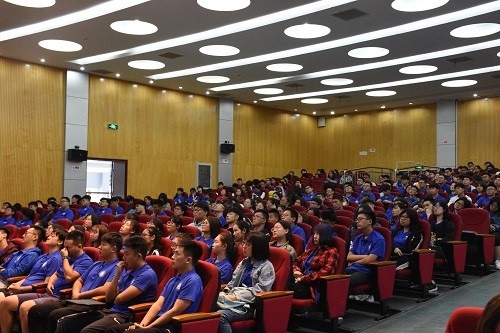 党委副书记毛文富主持,党委书记王红、院长姜旭、副院长王晓平、2018级辅导员李思奇以及2018级全体新生出席了本次大会。