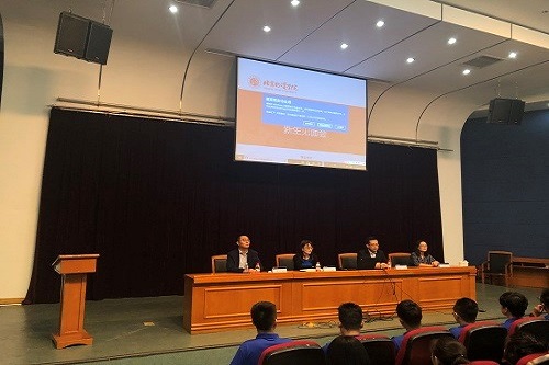 各专业的特色,并展示了日通班以及与国外高校交流学习的丰厚成果。院长表示,希望同学们能够尽快融入校园,适应大学生活,完成角色的转变。进一步正确树立自己的人生目标,合理规划自己的大学生活,划分和协调好学习、工作和娱乐时间,做一名全面发展的优秀大学生。