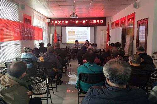 本次活动以“学习一带一路五周年相关成就”为主题,由采购管理专业学生党支部党员为社区党支部党员讲解。党课开始前,首先由天赐良园社区的党员们合唱《歌唱祖国》,社区老党员们慷慨激昂的歌声感染了我们这群学生党员,让我们懂得了,作为党员要永远对祖国怀有赤诚之心。
