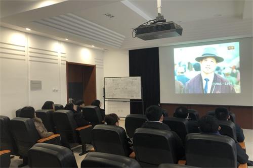 党委书记王红与师生们在北实101共同观看改革开放四十周年大会直播。