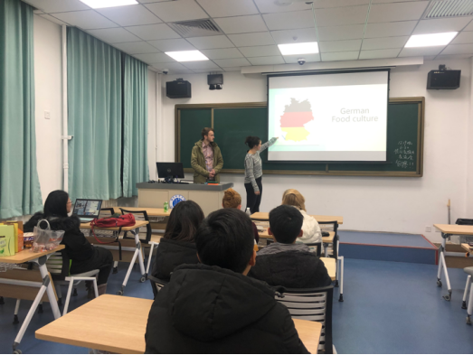 本次活动主题为德国文化。交流会上,首先来自德国的两位留学生开场,他们分别从早餐午餐晚餐以及聚会用餐等方面,详细的为大家讲解了德国饮食文化,充分调动了同学们的积极性。