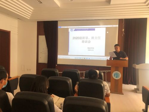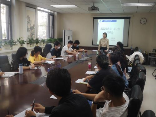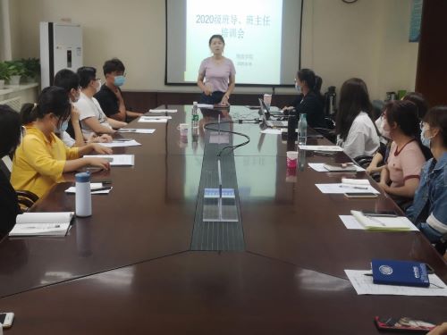 于下午14点30分在北实112召开了2020级新生班主任、班主任助理培训会。党委副书记孙涛、分团委书记李思奇、2020级全体班主任、班主任助理、2020级辅导员参加,2020级辅导员刘晨主持。