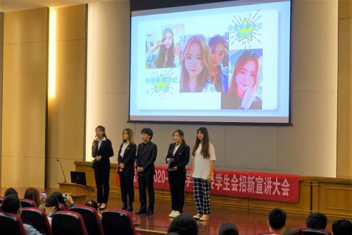 分团委学生会十一位部长带领他们的副部分别上台发言,向2020级新生介绍各部门基本情况及相应工作。