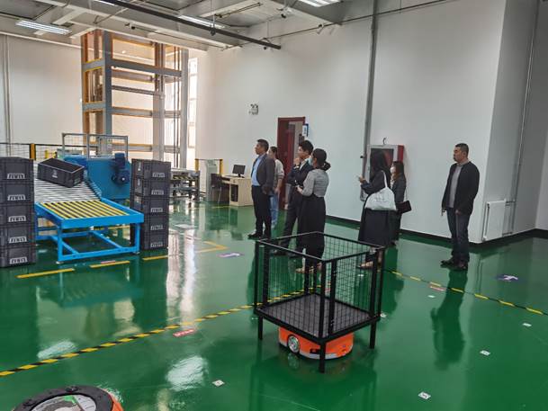 的办学规模与理念,并希望同上海万纬冷链物流有限公司进行深入的交流与合作。在双方交流的同时,国家级物流示范中心工作人员为上海万纬冷链物流有限公司总经理一行四人展示了一层七大物流系统,包括提升单元、托盘式立库+循环搬运系统、料箱式立库、流利式分拣系统、AGV系统等,并简单介绍了各物流系统的工作原理及应用场景。