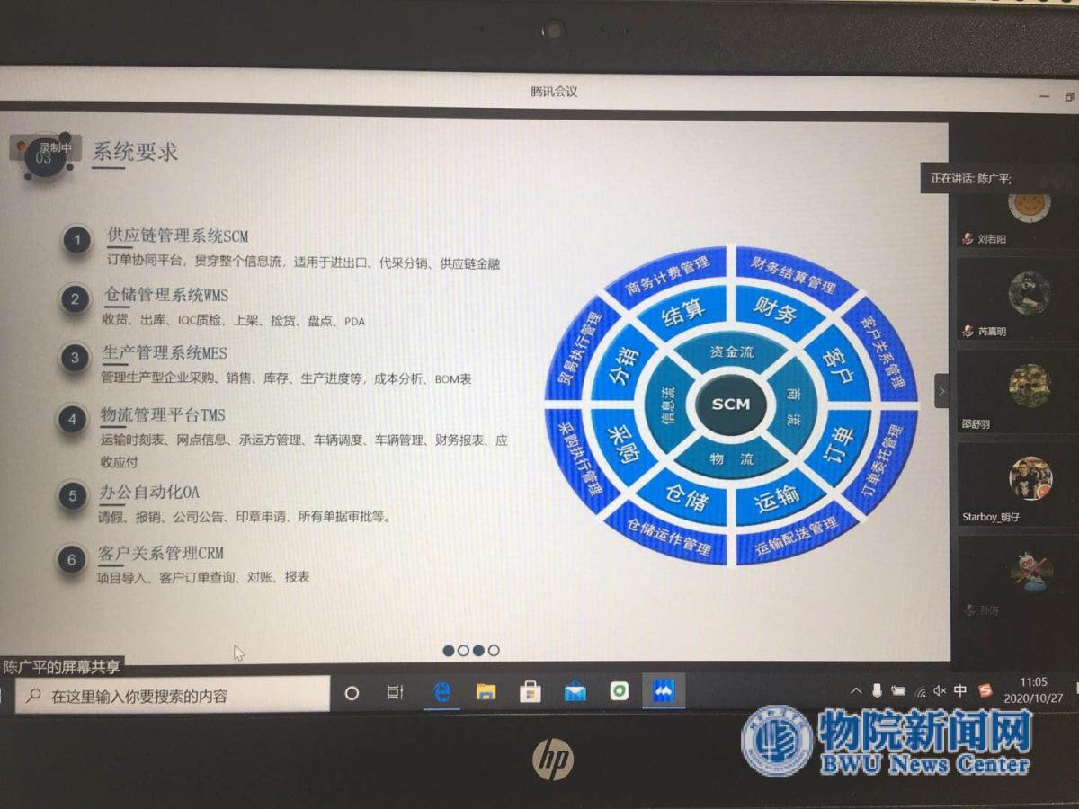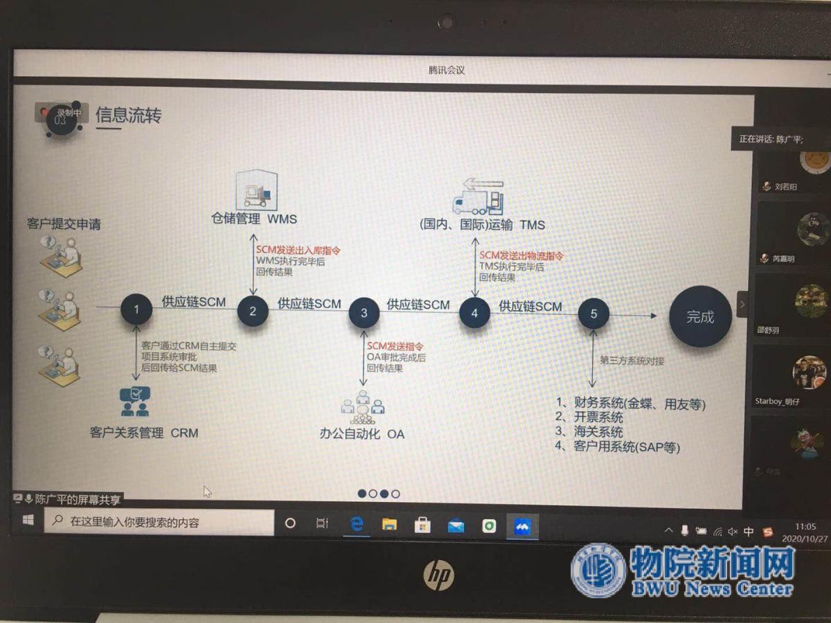 教学副院长芮嘉明、党委副书记孙涛、院长助理刘若阳、质量管理专业教师邵舒羽、采购管理专业教师赵守婷、供应链管理专业教师祁琪、对外合作办公室郭琳与安必快科技(深圳)有限公司产品总监余江、产品经理陈广平、销售经理许汪明等共同参加线上项目对接会。