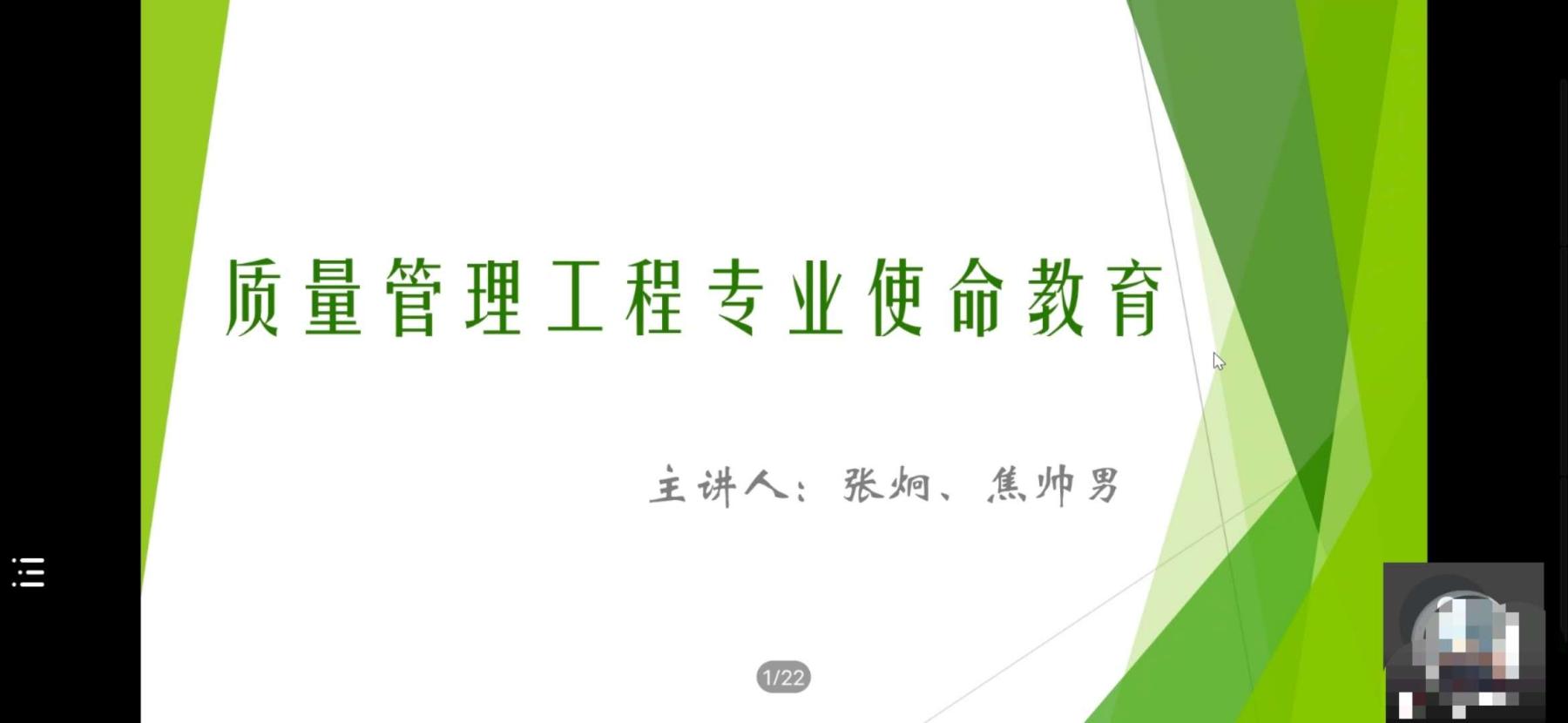 质量管理管理工程专业于2020年11月8日晚举办了以质量管理工程专业使命教育为主题的讲座。