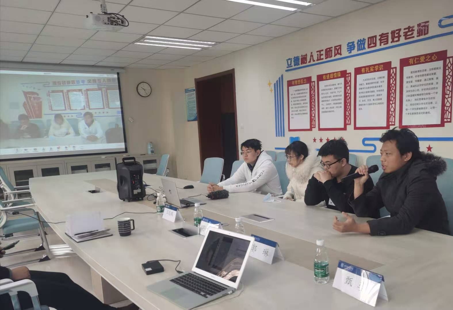 党委副书记孙涛,对外交流办公室郭琳,研究生辅导员王志鹏和大四年级辅导员臻姿担任线下评委。