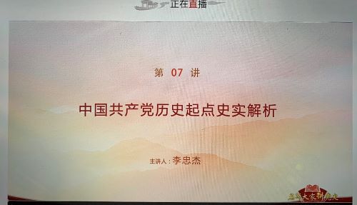 组织学生党员共同观看由中共党史学会副会长、原中共中央党史研究室副主任李忠杰主讲的“名师大家讲党史”系列网络公开课第七讲“中国共产党历史起点史实解析”。