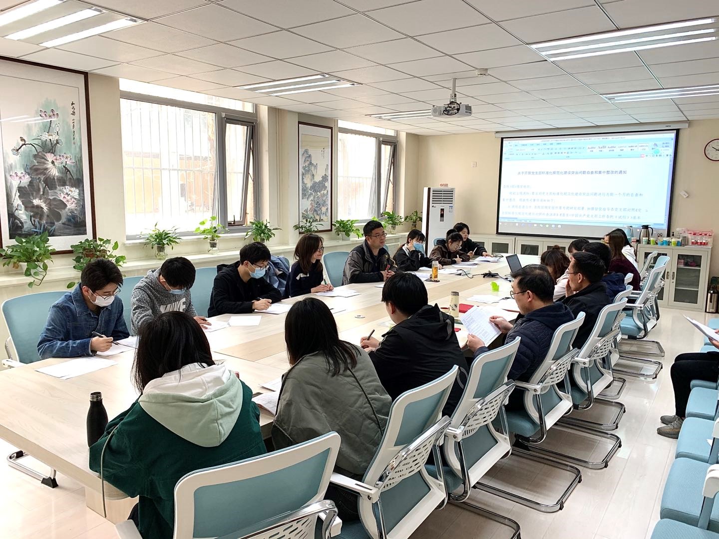 会议伊始,学院党委副书记孙涛就党支部标准化规范化建设突出问题自查和集中整改的相关材料进行整体解读说明,并对工作计划进行集中部署。