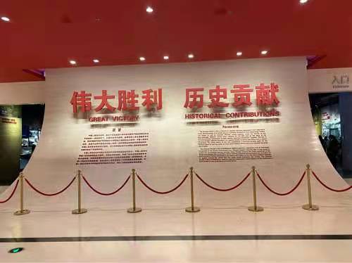 中国人民抗日战争纪念馆展示了中华民族的抗战历程,此次馆内主题展览以“铭记历史、缅怀先烈、珍爱和平、开创未来”为主题,馆内布置以民族危机救亡兴起、国共合作共赴国难、抗战灯塔中流砥柱、日军暴行惨绝人寰、浴血疆场民族壮歌、得道多助国际支援、历史胜利巨大贡献、以史为鉴面向未来八个部分为展现,以历史图片和实物为主,辅以景观、油画、雕塑、幻影成像、影视片等展示手段,突出表现在中国共产党倡导建立的统一民族战线的旗帜下,全国各族人民共同抵抗日本帝国主义侵略的历史,突出表现中国共产党在抗日战争中的中流砥柱作用,突出表现中华民族为世界反法西斯战争胜利付出的巨大民族牺牲和做出的重要贡献,通过一幅幅照片、一件件文物、一处处复原场景深刻的揭露了日本侵略者在侵华战争中犯下的滔天罪行。