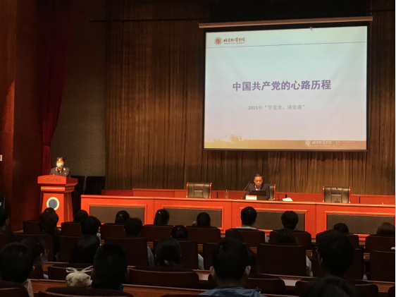 全体教职工、学生党员代表讲授了一堂题为《中国共产党的心路历程》的党课。党委常委、党委宣传部(教师工作部)部长孙杰、学校办公室副主任韩莹莹列席本次党课。刘院长从“思想转变过程,心境的成长过程”这一问题谈起,引发在场师生对“中国共产党的心路历程”发展的深沉思考。