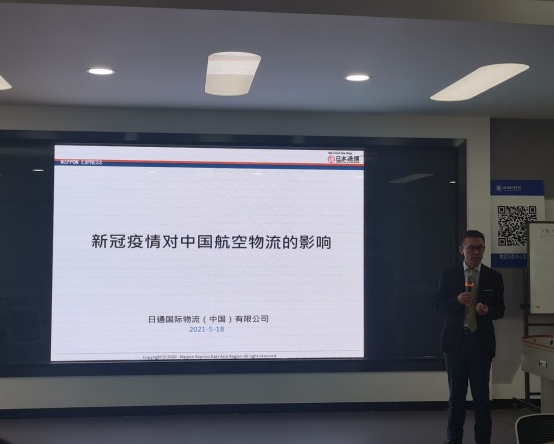 仪式结束后,野口部长及日通公司领导参观了物流示范中心、崇德楼一层。赵经验为同学们发表了以航空物流为题材的主题演讲。一个小时的精彩演讲让同学们了解了航空物流的发展趋势以及国内外航空物流现状。