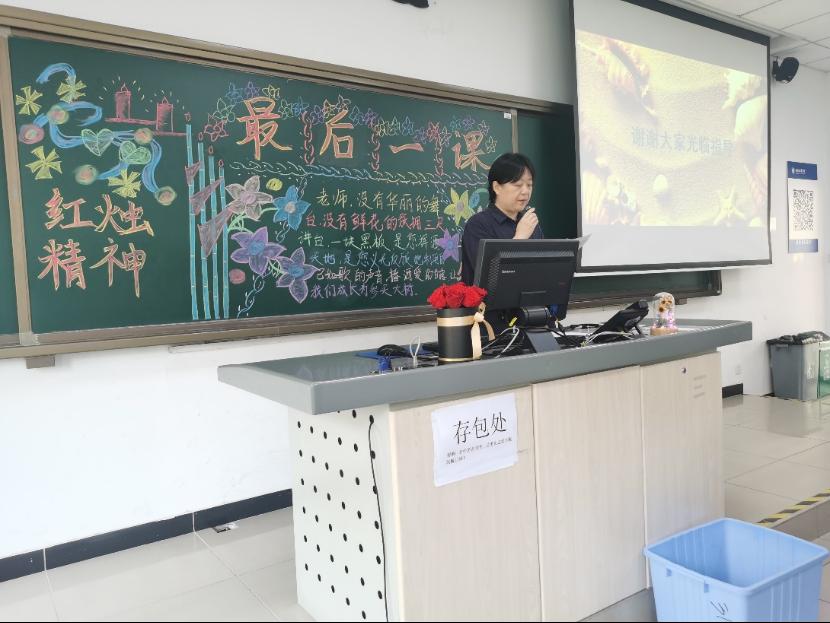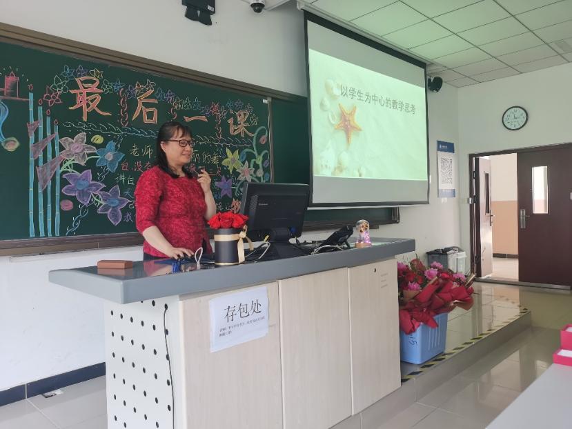 学校机关党委书记、校工会负责人郝庆老师代表校工会对两位即将退休的老师送上祝福,并宣读了校工会写给两位老师的信。学校教师发展中心主任孙静老师说,课堂是教师的道场,既是布道场,又是施道场,体现着一个教师最大的价值和最高的尊严,最后以“夕阳无限好、晚霞别样红”送给两位老师。
