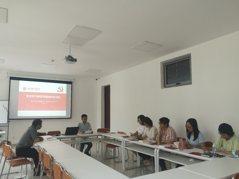 首先,党支部书记王国义代表党支部委员会向党员通报党支部组织党史情况,党支部对党史学习教育非常重视,学习分为分散学习与集体学习,党支部把习近平总书记在党史学习教育动员大会上的重要讲话,以及党中央制定的4本学习材料习近平《论中国共产党历史》、《毛泽东、邓小平、江泽民、胡锦涛关于中国共产党历史论述摘编》、《习近平新时代中国特色社会主义思想学习问答》、《中国共产党简史》,习近平总书记在庆祝中国共产党成立100周年大会上的重要讲话等学习材料发给党员自学,并召开专题会议,集体学习《榜样5》并交流研讨,支部书记做了党史学习教育专题分享交流。同时,支部广泛征集专业教师党员和工作服务对象的意见建议,以开展对外合作交流为工作重点,制定了面向学生、面向教师的实事清单,充分发挥党支部在专业建设中的引领作用。