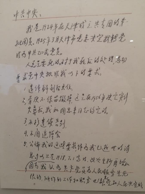 看着一件件文物、文献、照片珍品,了解了周总理当年到地震灾区慰问群众、回延安看望老区人民等。在纪念馆内,记录了在周总理生命最后的一段时间仍然为了中国人民能够幸福生活殚精竭虑。实践团感同身受。在纪念馆的三楼,有一封厚重的遗书,即使周总理、邓奶奶生命快到终点,仍然心念共产党,始终不忘自己是一名中国共产党员,在遗书中,邓奶奶写到,将骨灰撒入海河,不办追悼会。不禁让实践团的同学们泪目。