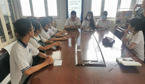 分团委学生会暑期实践团代表薛歆颖、冯新宇、赵思琦、张悦与“红领巾”宣讲团四位同学及其领队老师,进行了一场座谈会。在座谈会上,冯新宇向四位宣讲团同学概述地讲解了物流管理专业的大致学习内容以及就业方向,宣讲团同学也因此对物流行业有了更多的认识。随后,薛歆颖同学就自身经历为弟弟妹妹们提供了一些学习上、兴趣爱好上的建议。最后,薛歆颖同学鼓励宣讲团同学们要好好学习,考入理想的高中和大学,完成自己的梦想。
