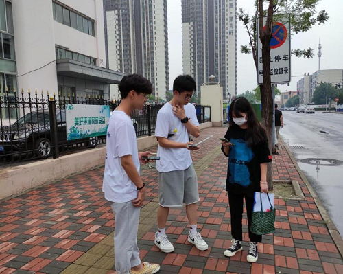 “红领巾”宣讲团结束后,张文涛、王冬霜等9位同学在社区内及社区周边对市民进行关于党史学习教育以及对建党百年的感悟相关调研。