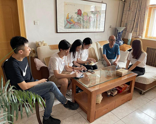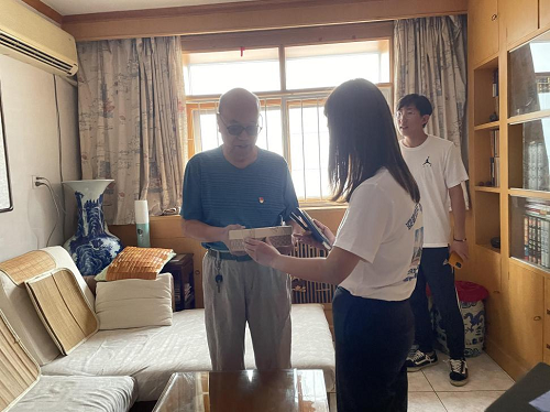 经社区韩书记和工作人员的引导下,李思奇老师与分团委学生会主席团部分成员一起来到社区老党员原津南区党校教师赵宗礼老师家中进行采访交流。