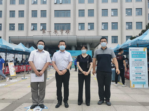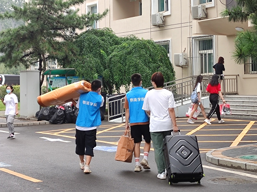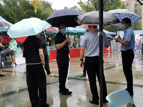 党委书记王红,院长姜旭,教学副院长芮嘉明和党委副书记孙涛亲临现场,即使天气骤变,突降大雨,仍坚守在迎新场地,给予师生莫大的支持和鼓励。学工教师、班主任老师对新生班导及志愿者们给予充分指导,对学院迎新工作的每一个环节层层把关,根据新生报到情况及时对志愿工作进行调整,细化各项工作流程,为新生安全有序的进行注册报到做有力保障,保障更高效的为新生服务。