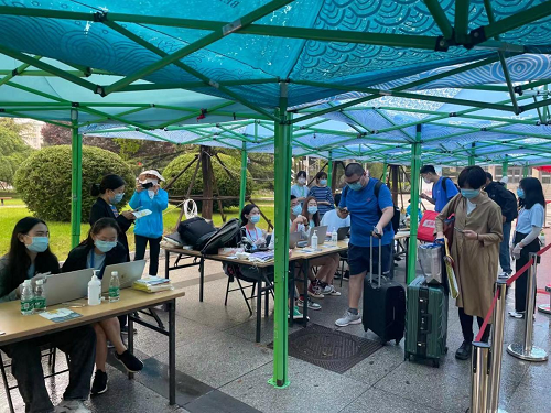 积极配合学校要求,并安排140余名志愿者学生在南北门引导和帮助新生搬运行李。在主教前,迎新现场每个桌上配备防疫物资和口罩,为新生到来做好了防疫准备。